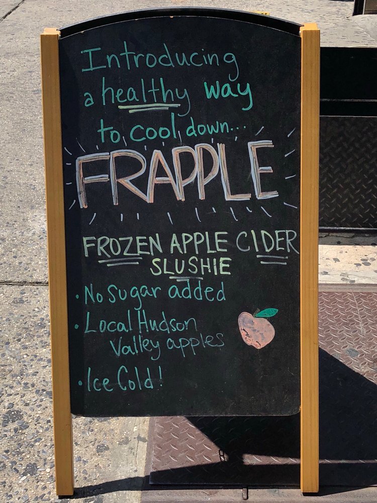 Fresh pressed apple cider, made from locally harvested Hudson Valley apples direct from the cider mill (to be enjoyed cold).